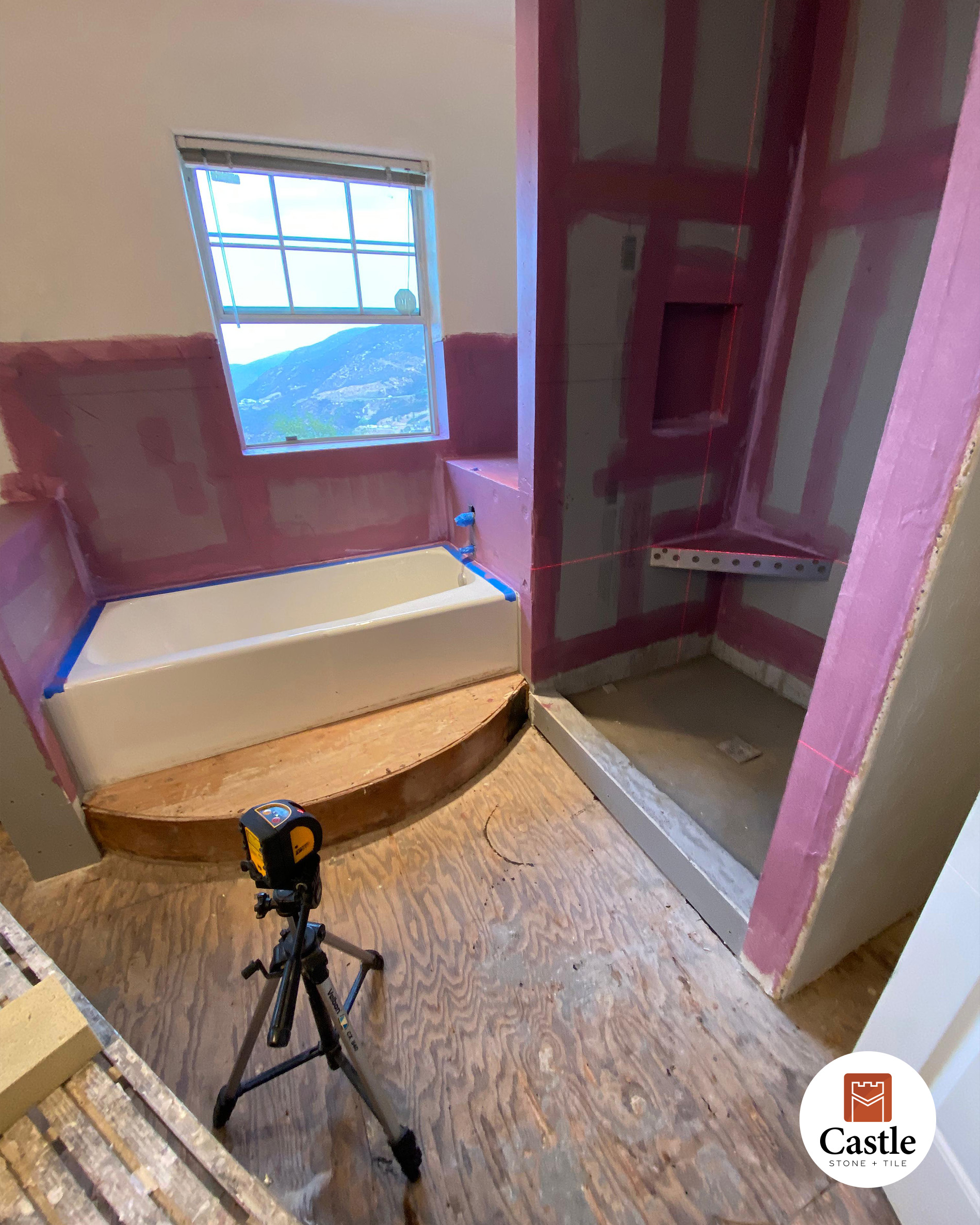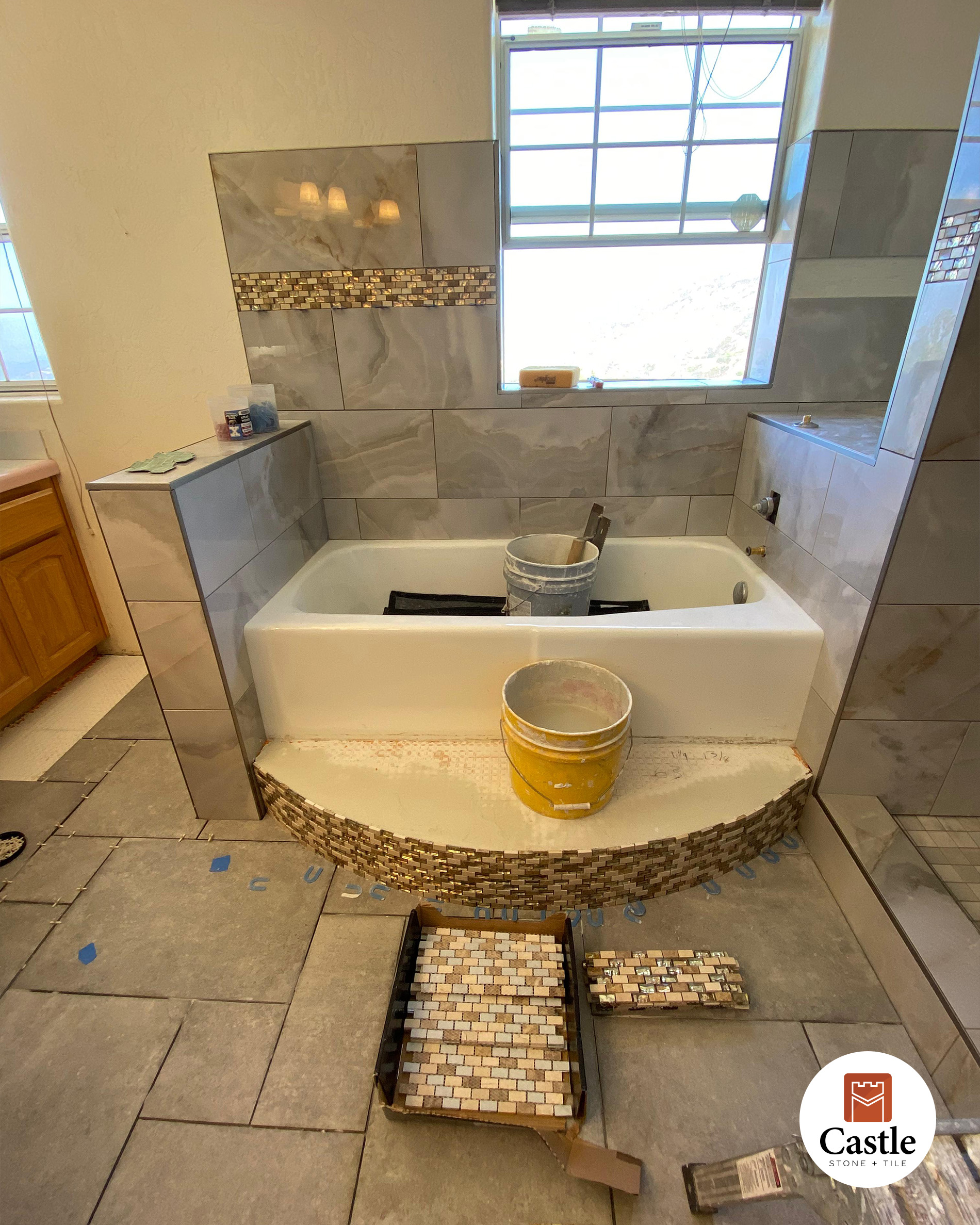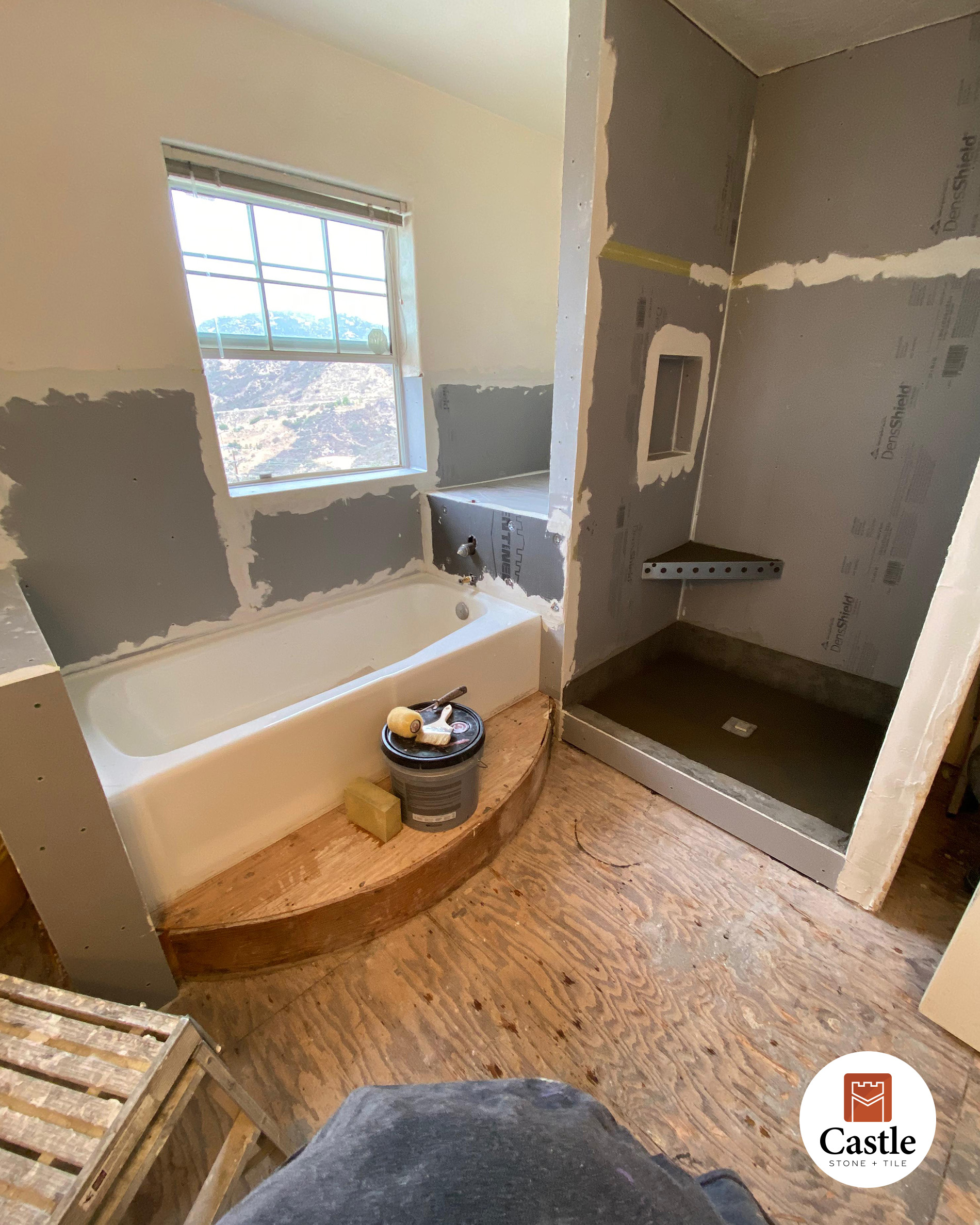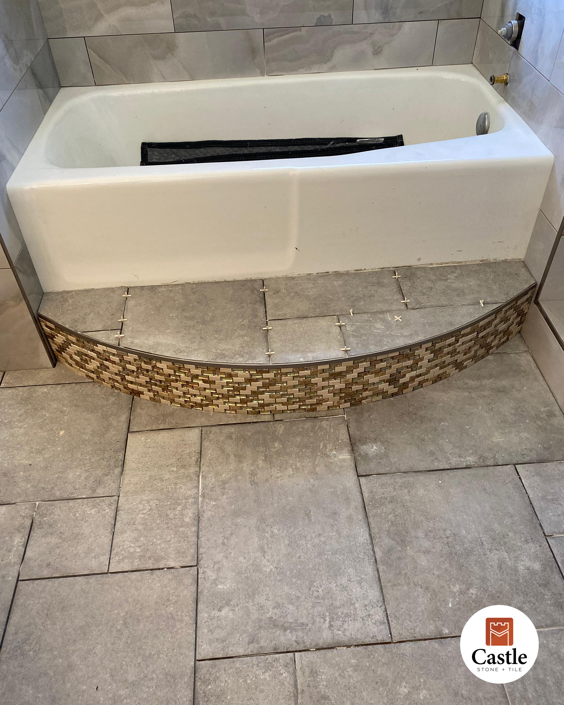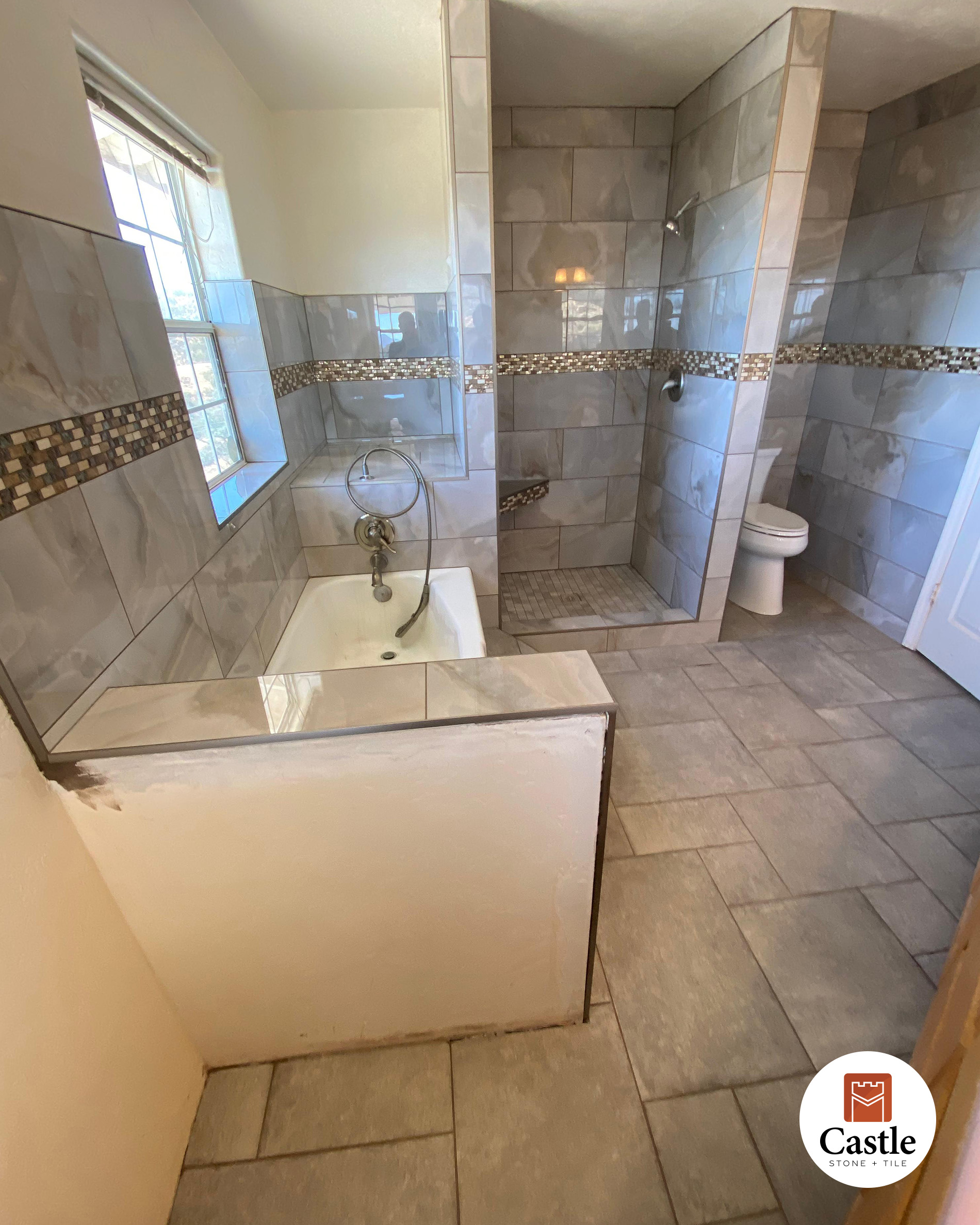 • Scope: Full bathroom remodel with tub surround, shower walls, and floor