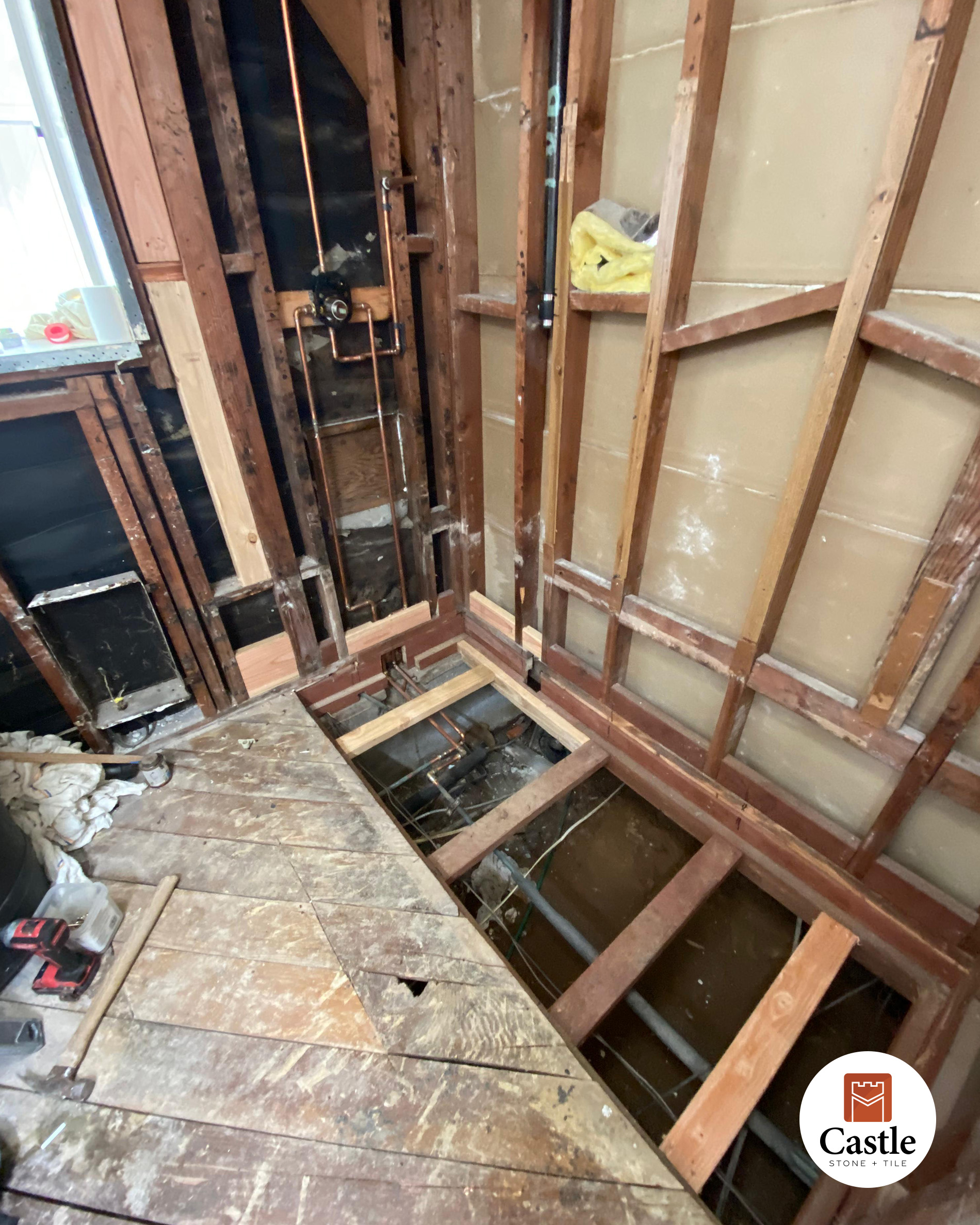 Structural Repair: Subfloor was rebuilt to provide a stable, long-lasting foundation for the shower system.