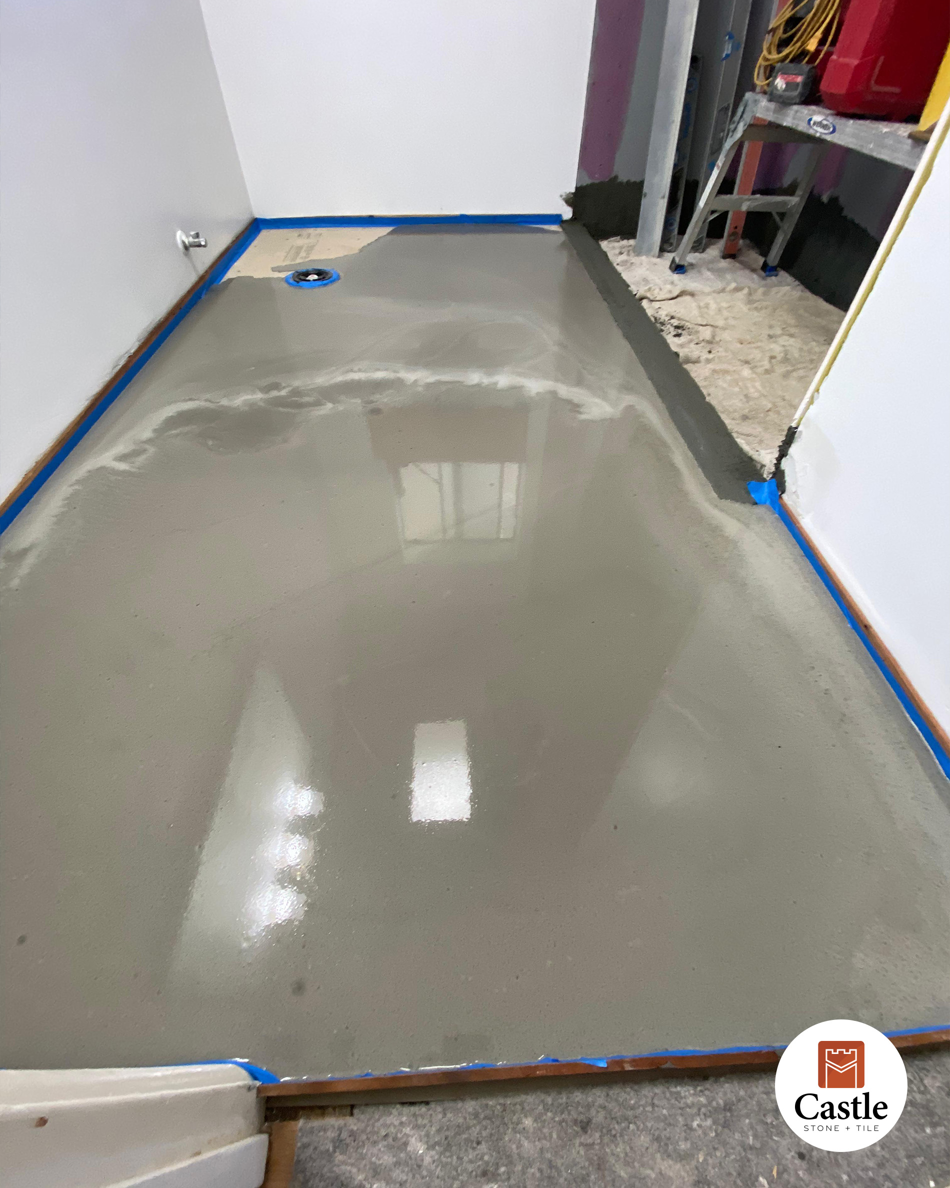 Precision Leveling: Bathroom floor was corrected from 1 ½ inches out of level, ensuring proper drainage and balance.